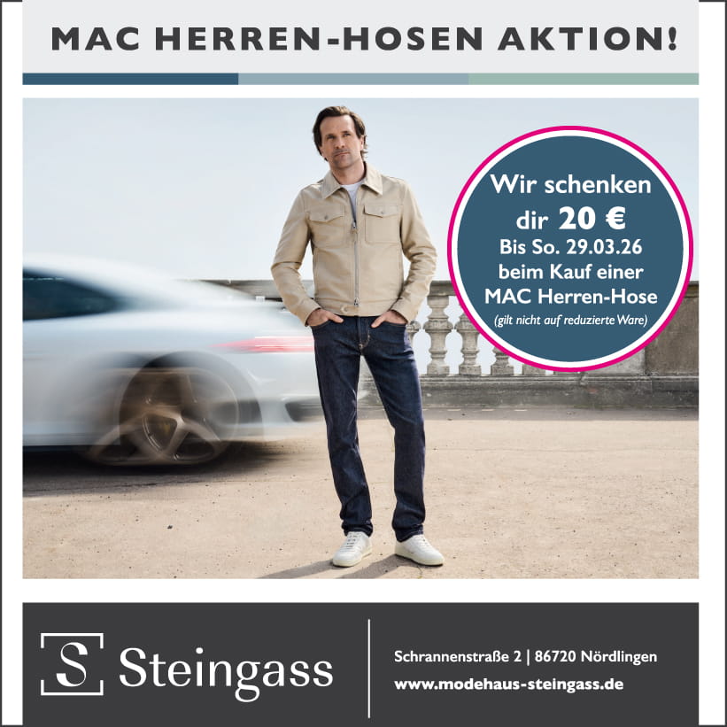 Wir schenken dir 20 € bis So. 29.03.26 beim Kauf einer MAC Herren-Hose in Nördlingen