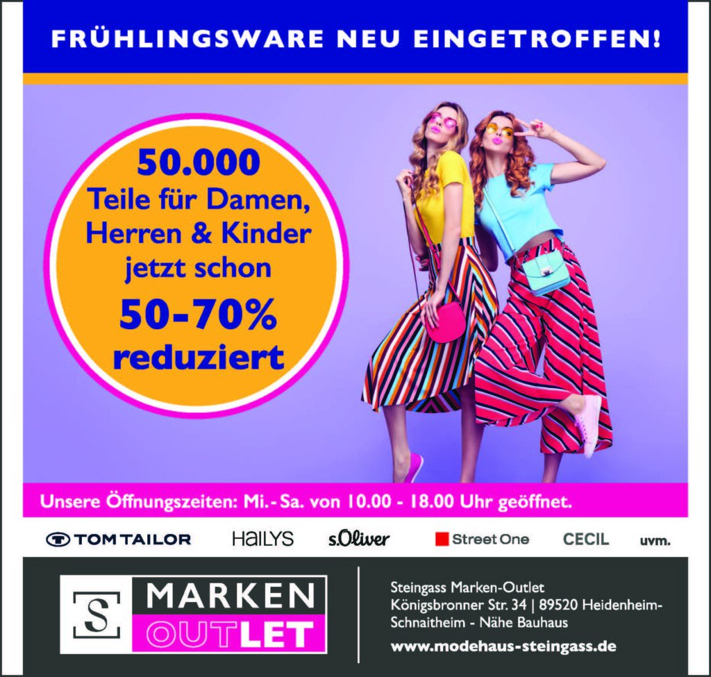 FRÜHLINGSWARE NEU EINGETROFFEN IM OULET HEIDENHEIM