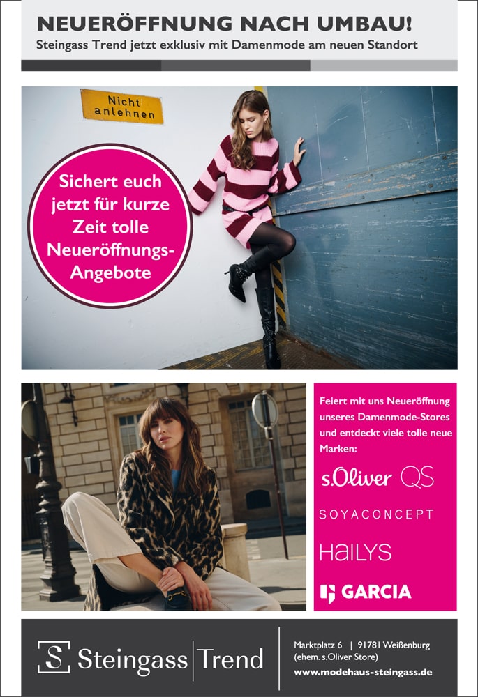Steingass Trend jetzt exklusiv mit Damenmode am neuen Standort in Weißenburg